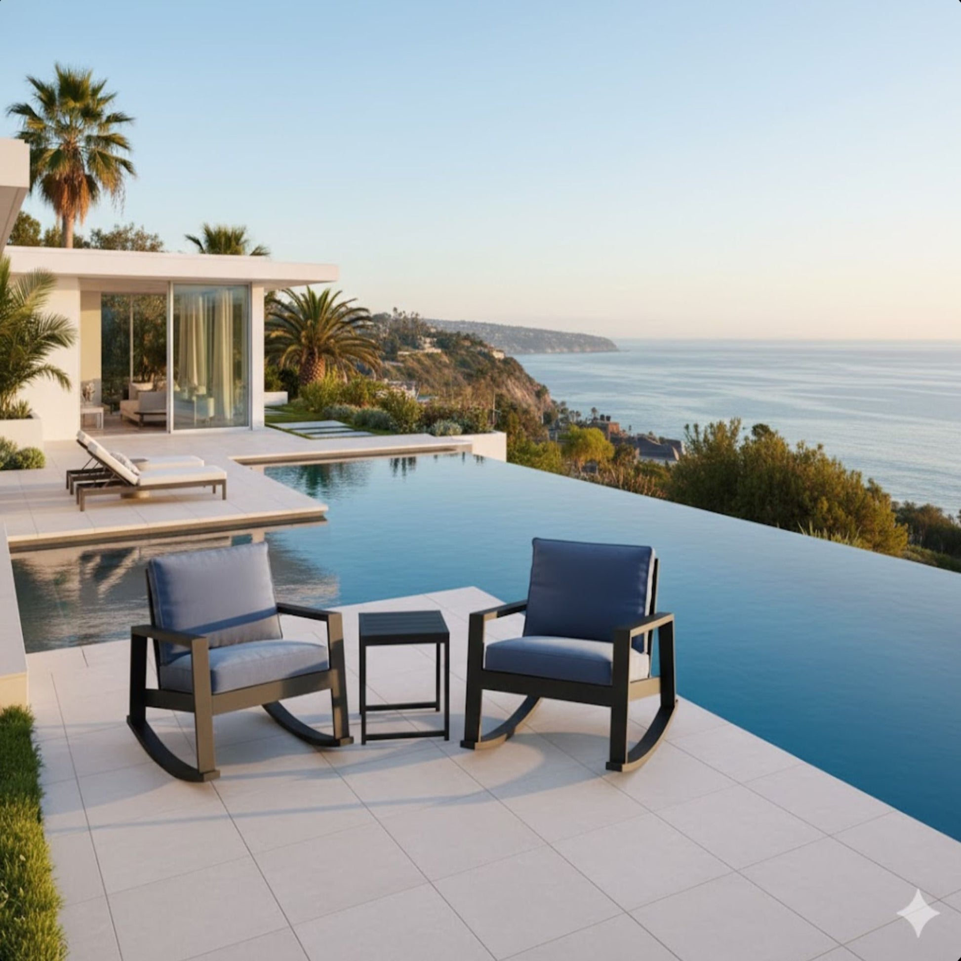 - Modern Conversation Design: Sleek black frame with bold blue cushions creates a contemporary look for any outdoor space.