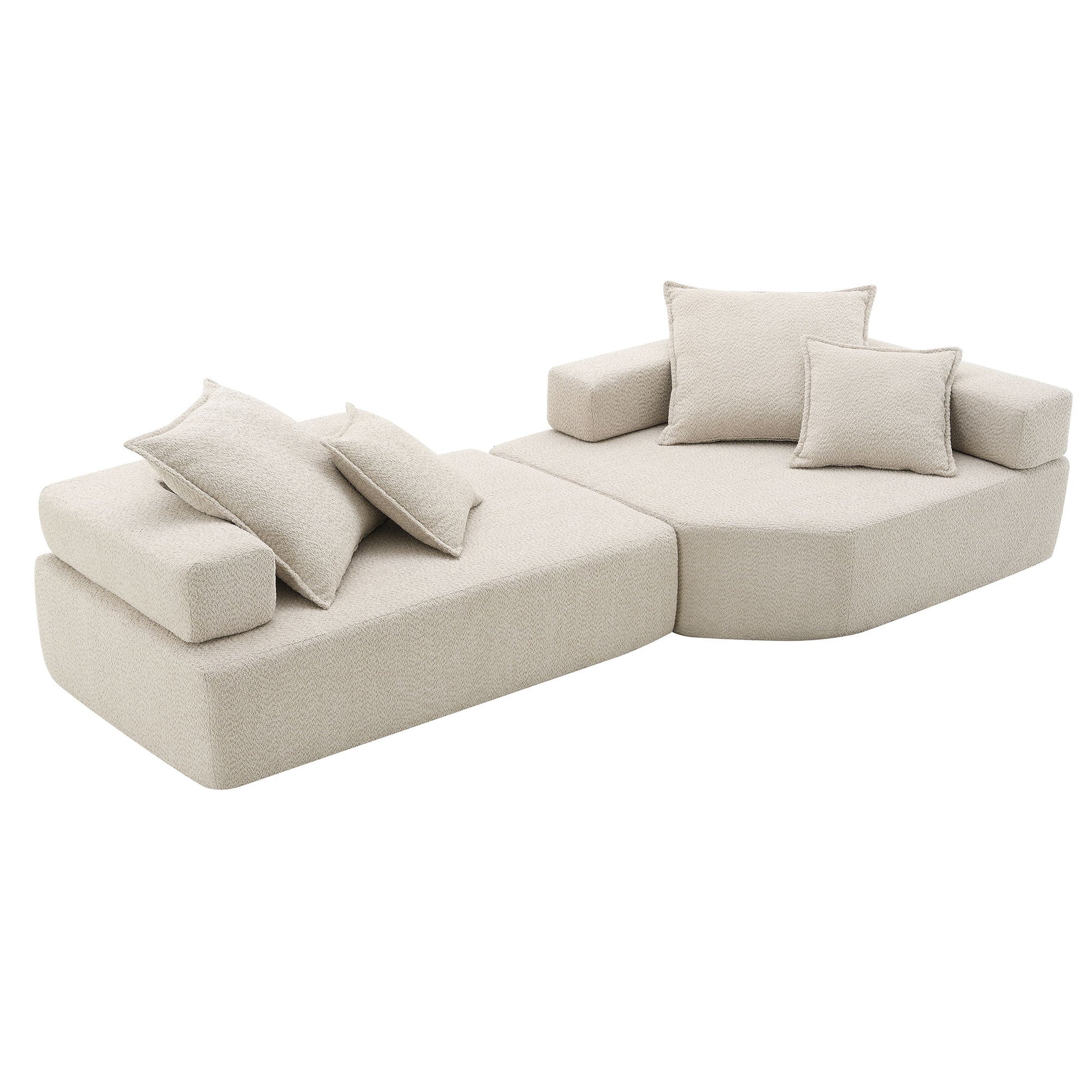 Oversized Modular Sectional Sofa, Luxury Boucle Floor Couch Set, Convertible Sleeper Couch, Spacious Foam-Filled Sofa Bed, 2 Piece Free Combination - Beige