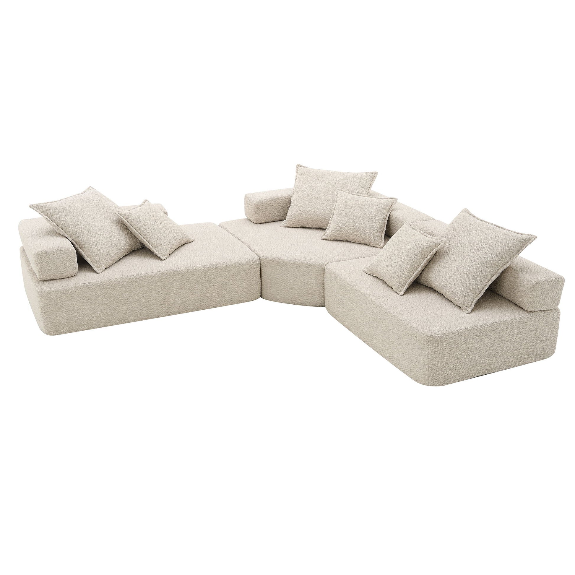 Oversized, Modular Sectional Sofa, Luxury Boucle Floor Couch Set, Convertible Sleeper Couch, Spacious Foam-Filled Sofa Bed, 3 Piece Free Combination - Beige