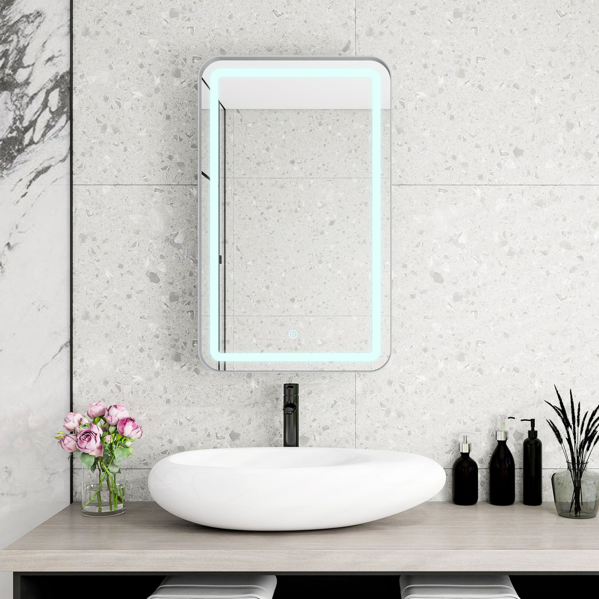 - LED Mirror with 3 Light Modes: Built-in LED lighting with three adjustable color temperatures - warm, cold, and natural - ensures optimal lighting for makeup and grooming in any environment.