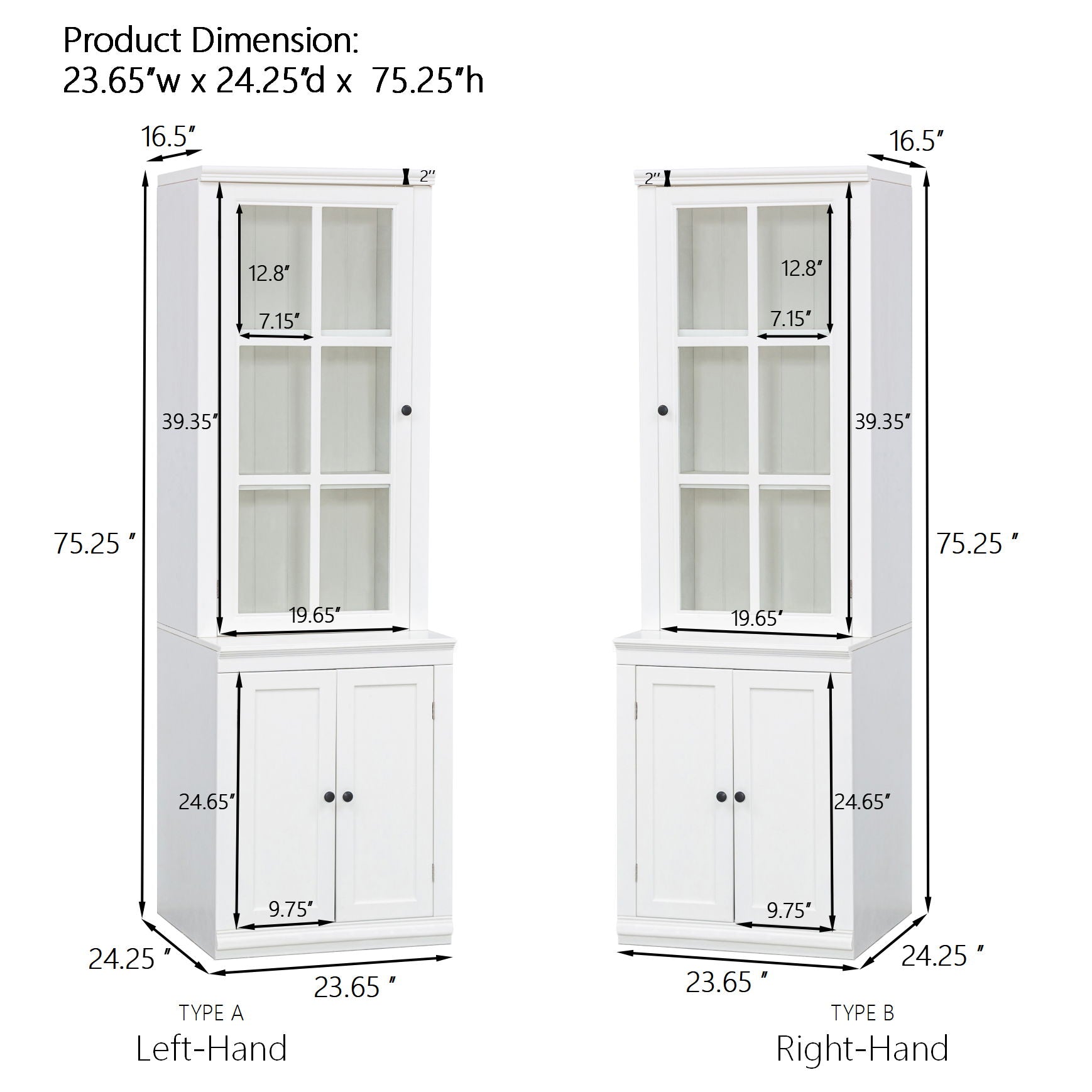 Retro Style Hutch Cabinet With Double Glass Doors, China Cabinet For Home, Office, Or Studio - White