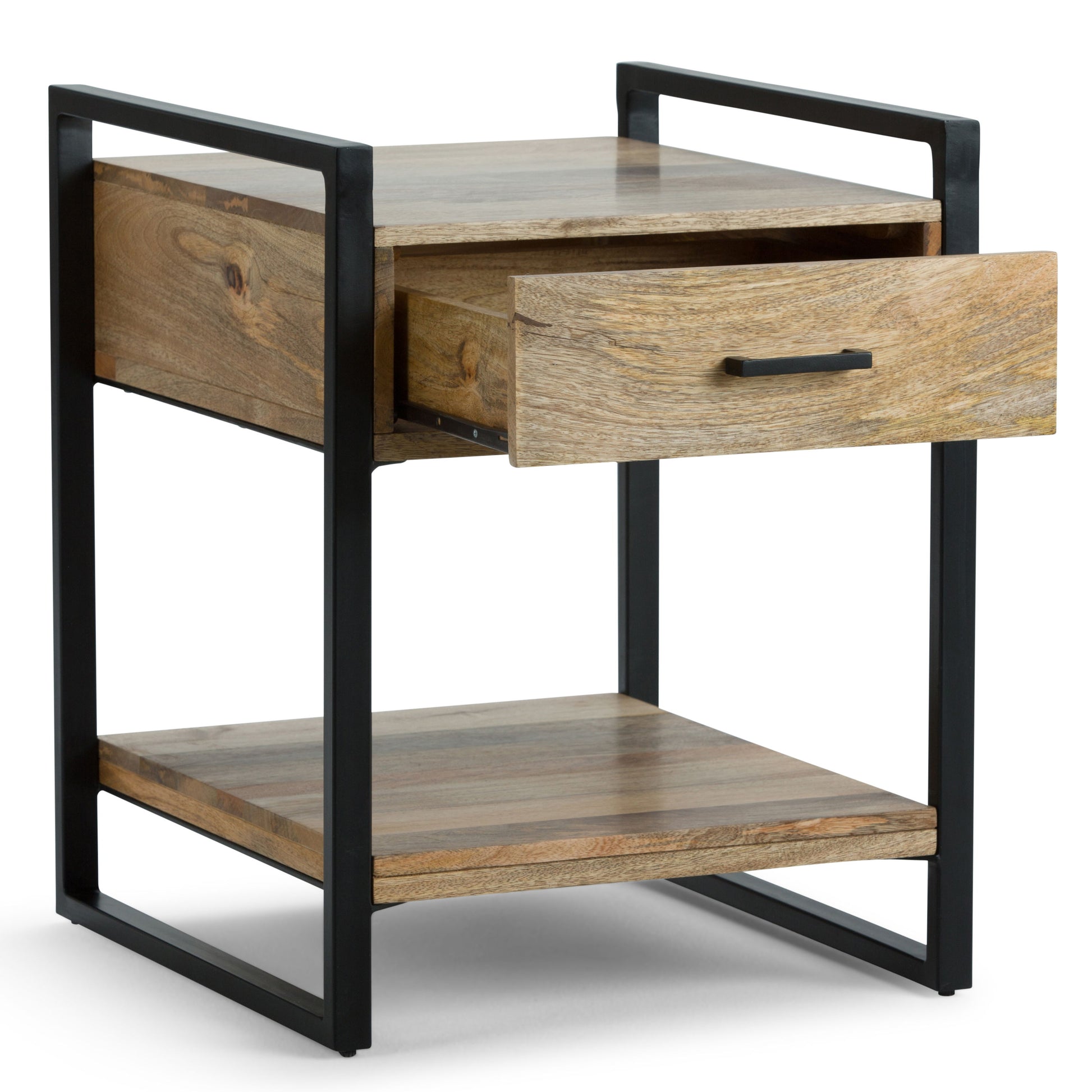- Features one drawer with metal drawer glides and large open bottom shelf