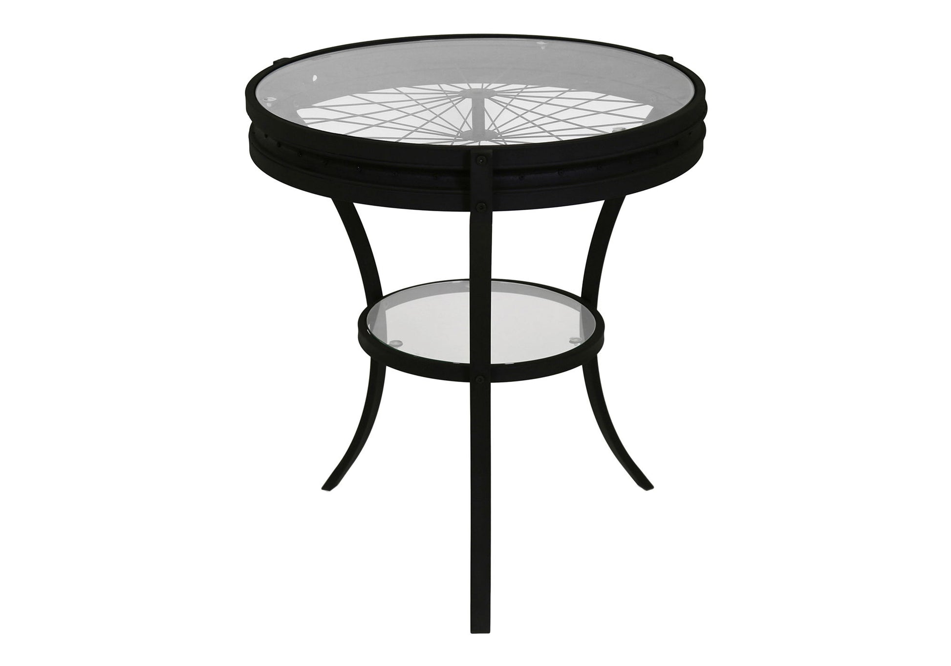 - Stylish Design: This accent table features a sophisticated black hammered finish and a unique wheel spoke design on the surface, adding a touch of elegance to any room.