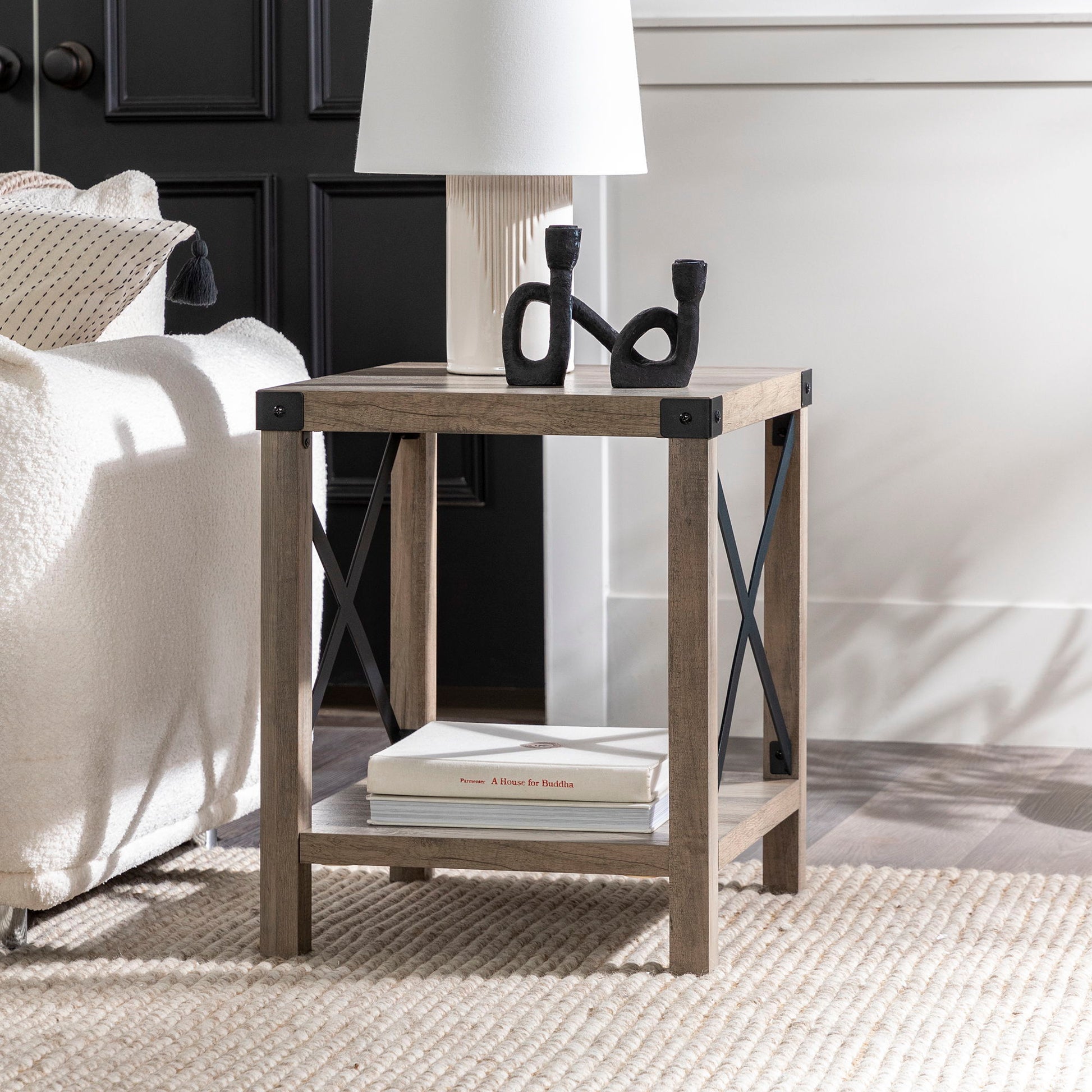 Rustic Industrial X 2 Tier Side Table - Gray Wash