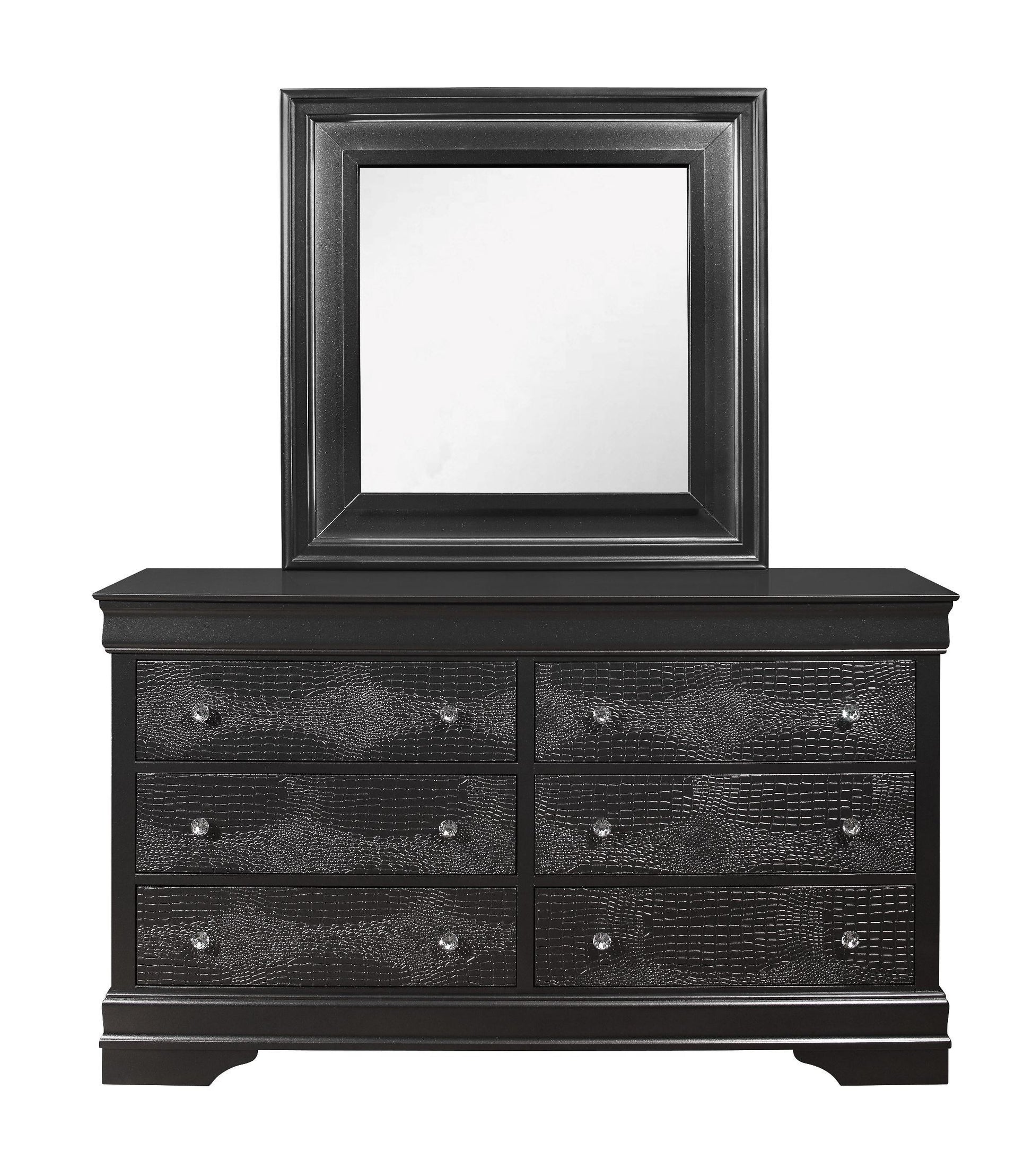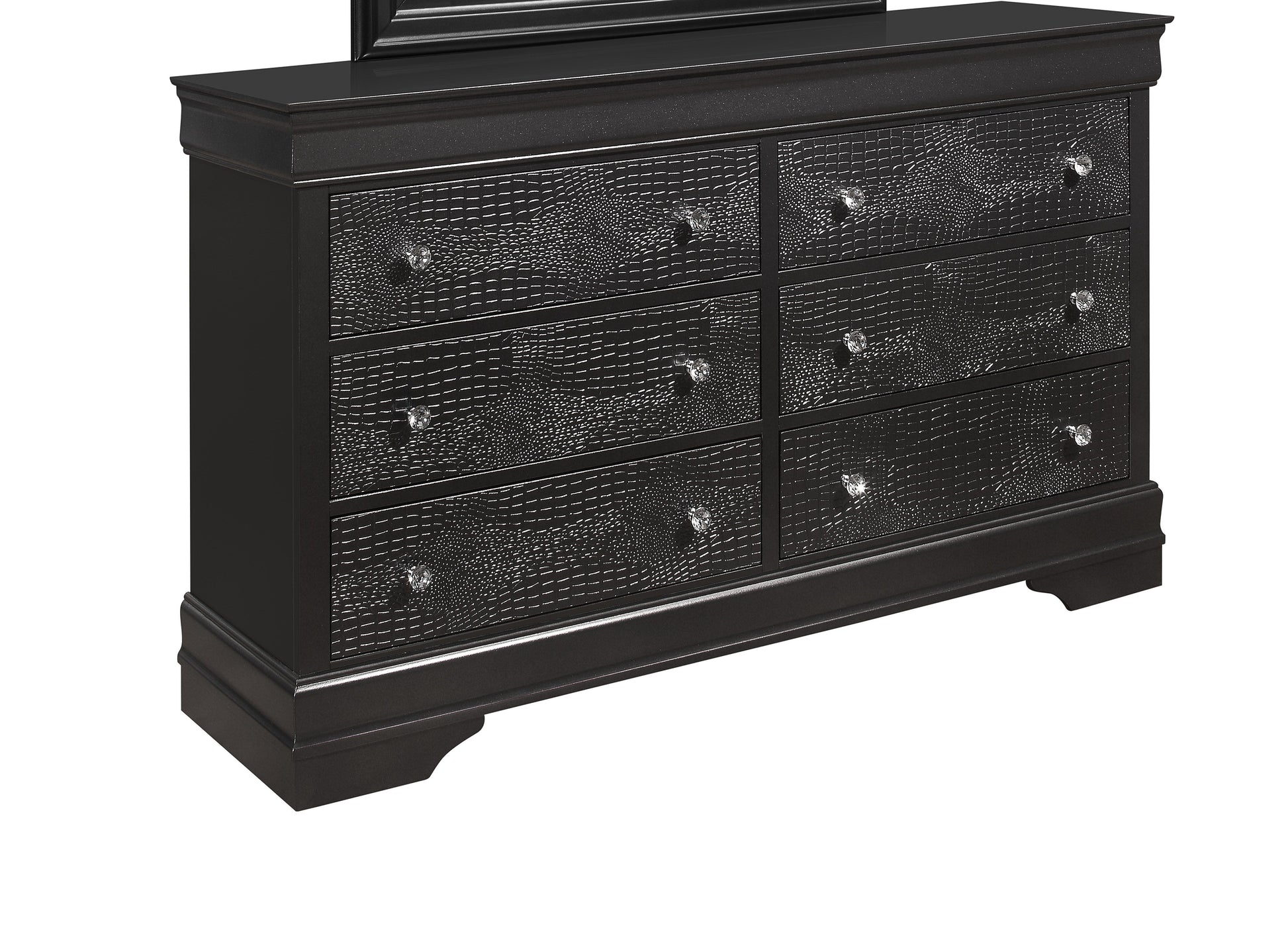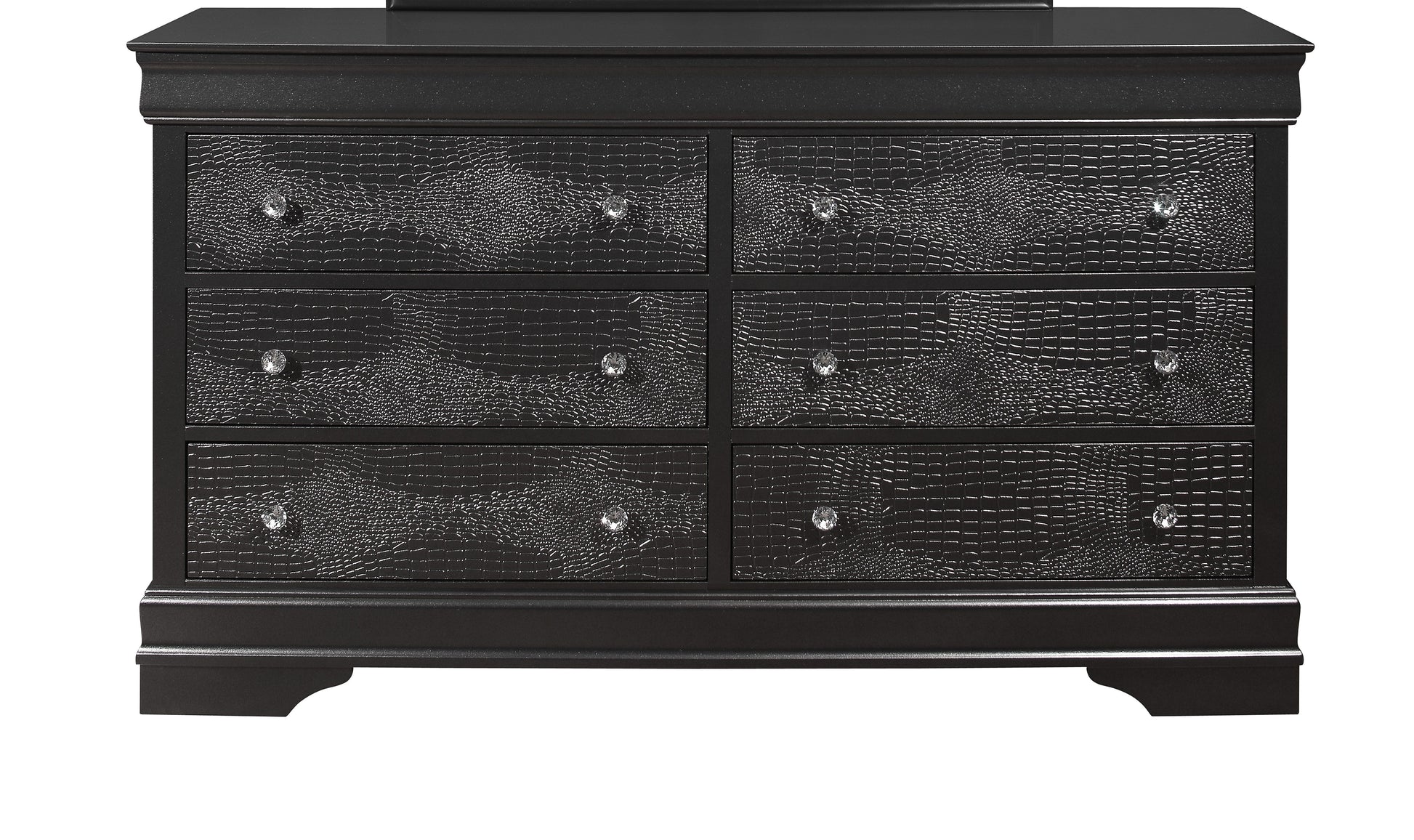 - Elegant Design: The SHAKER CROCODILE DRESSER features crystal embellished hardware and textured detailed drawer fronts, adding a touch of luxury and sophistication to any bedroom.