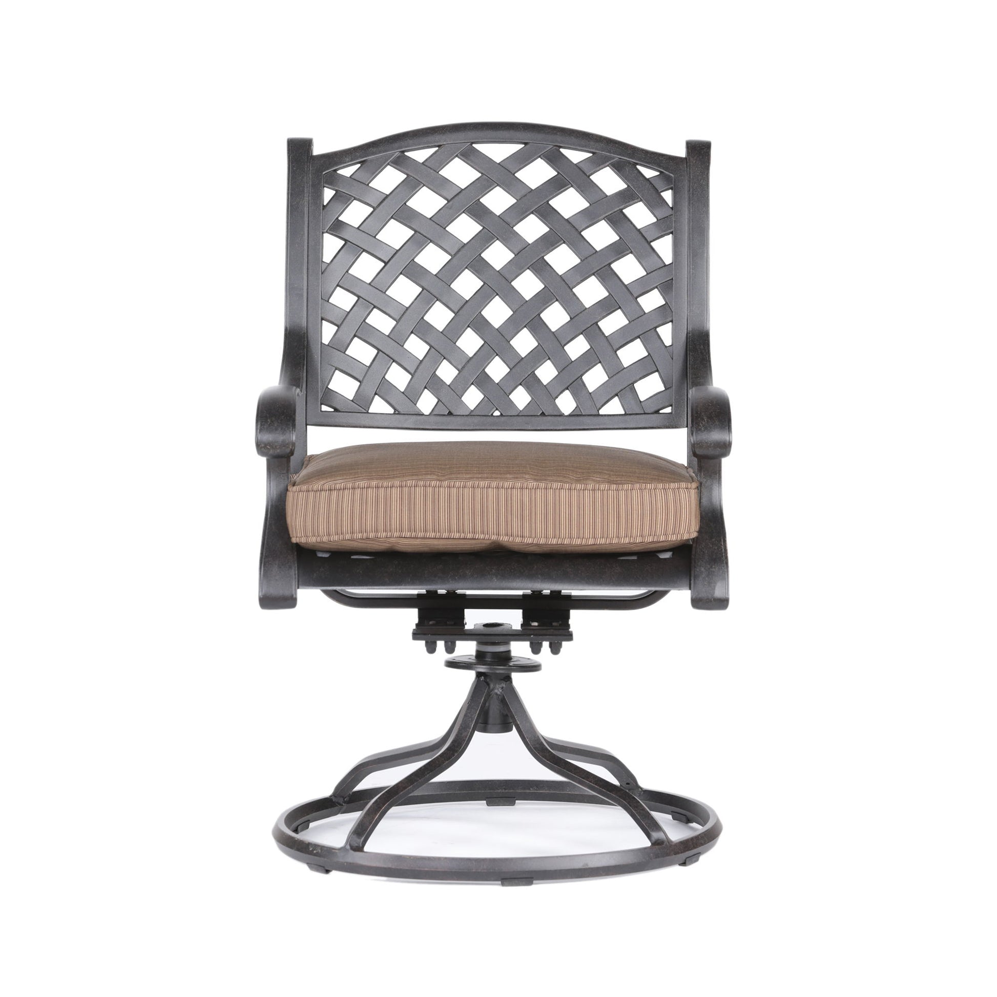 - Spacious Dining Set: set includes swivel rocking armchairs and a large dining table.