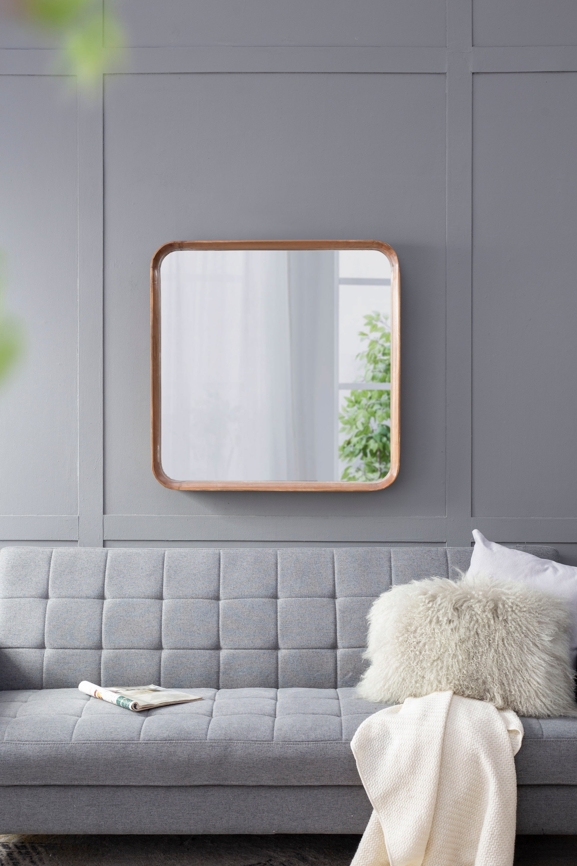 Square Mirror With Wood Frame, Wall Mirror For Living Room Bathroom Entryway - Brown