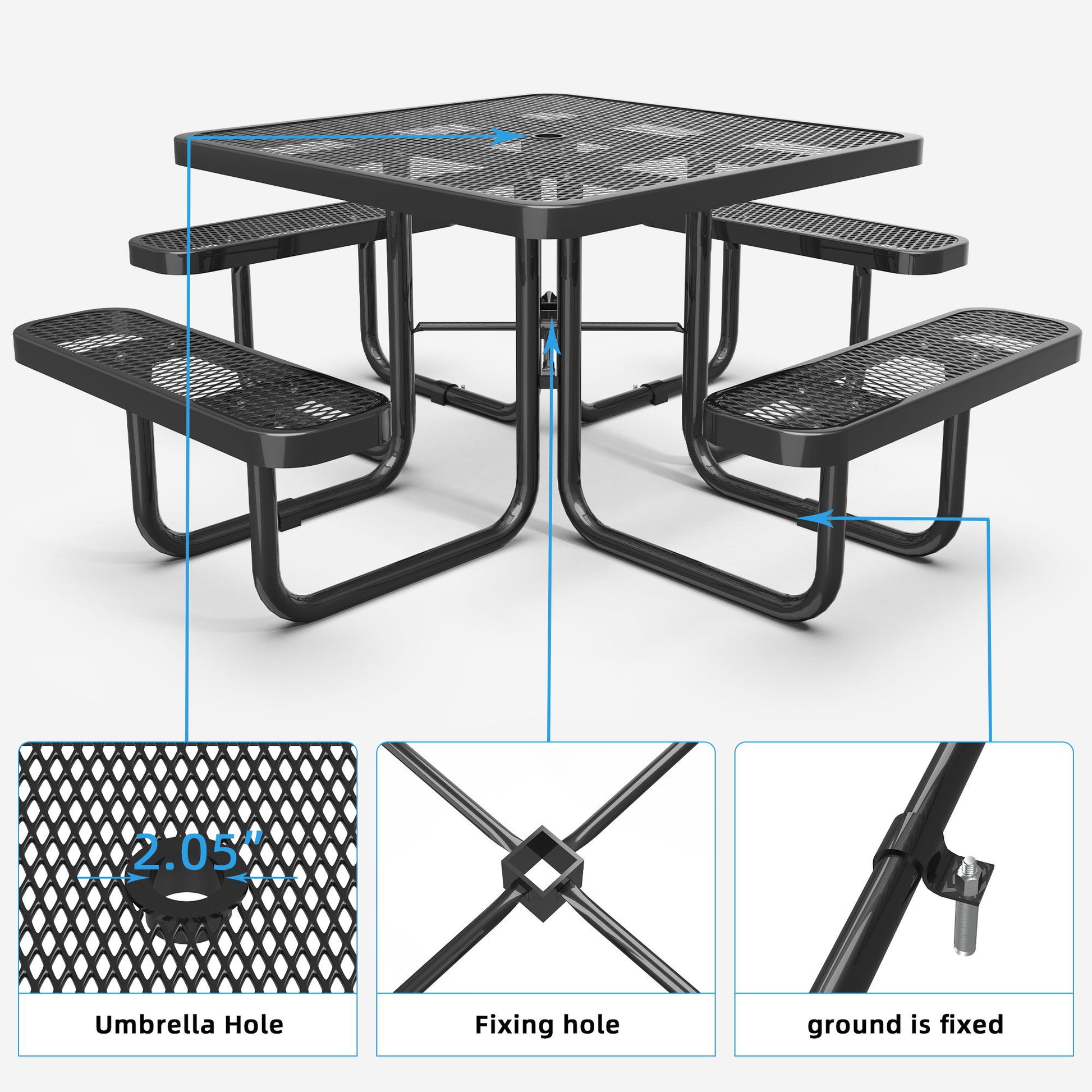 Square Outdoor Steel Picnic Table With Umbrella Pole - Blue