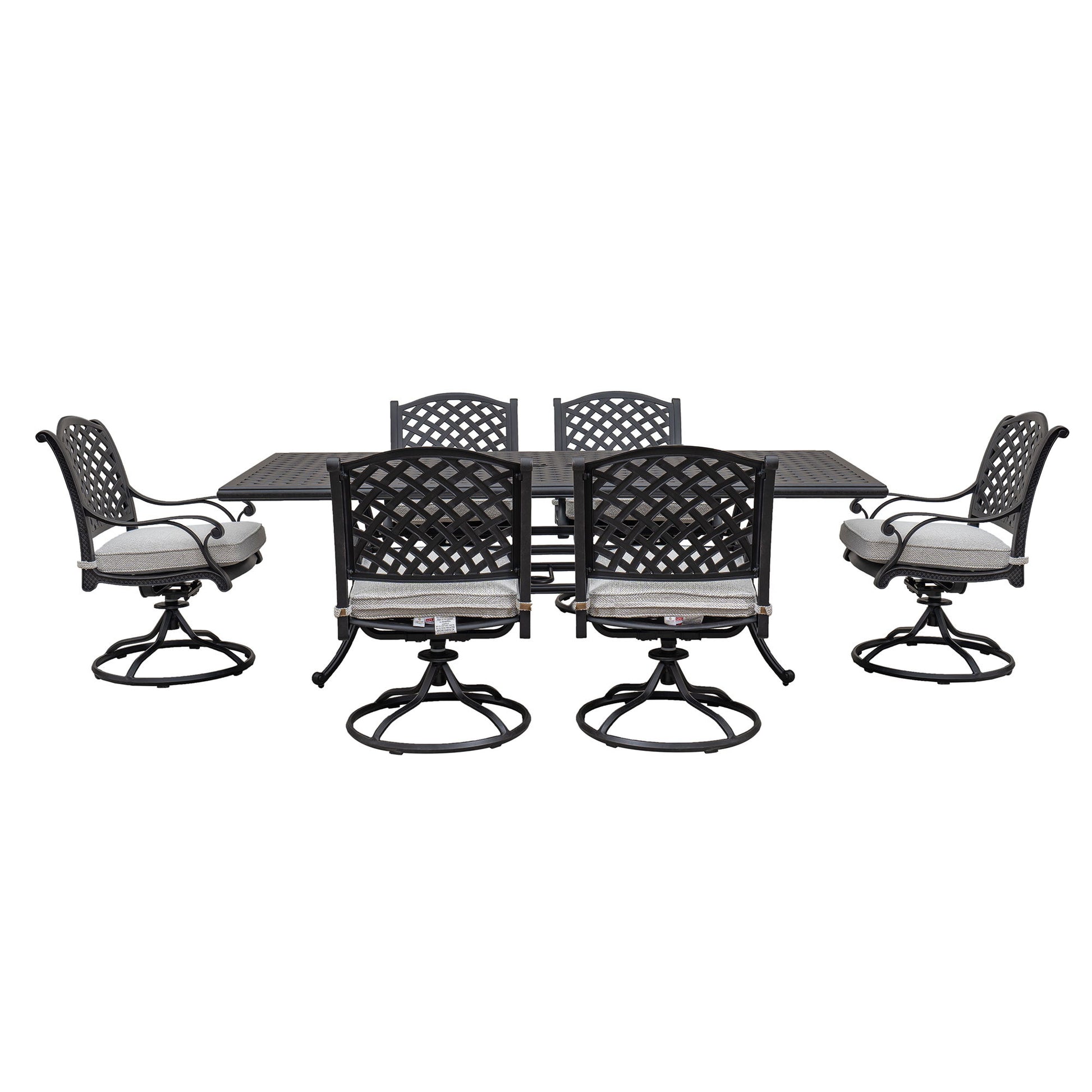 Stylish Outdoor 7 Piece Aluminum Dining Set With Cushion, Swivel And Rocking Chairs - Sandstorm