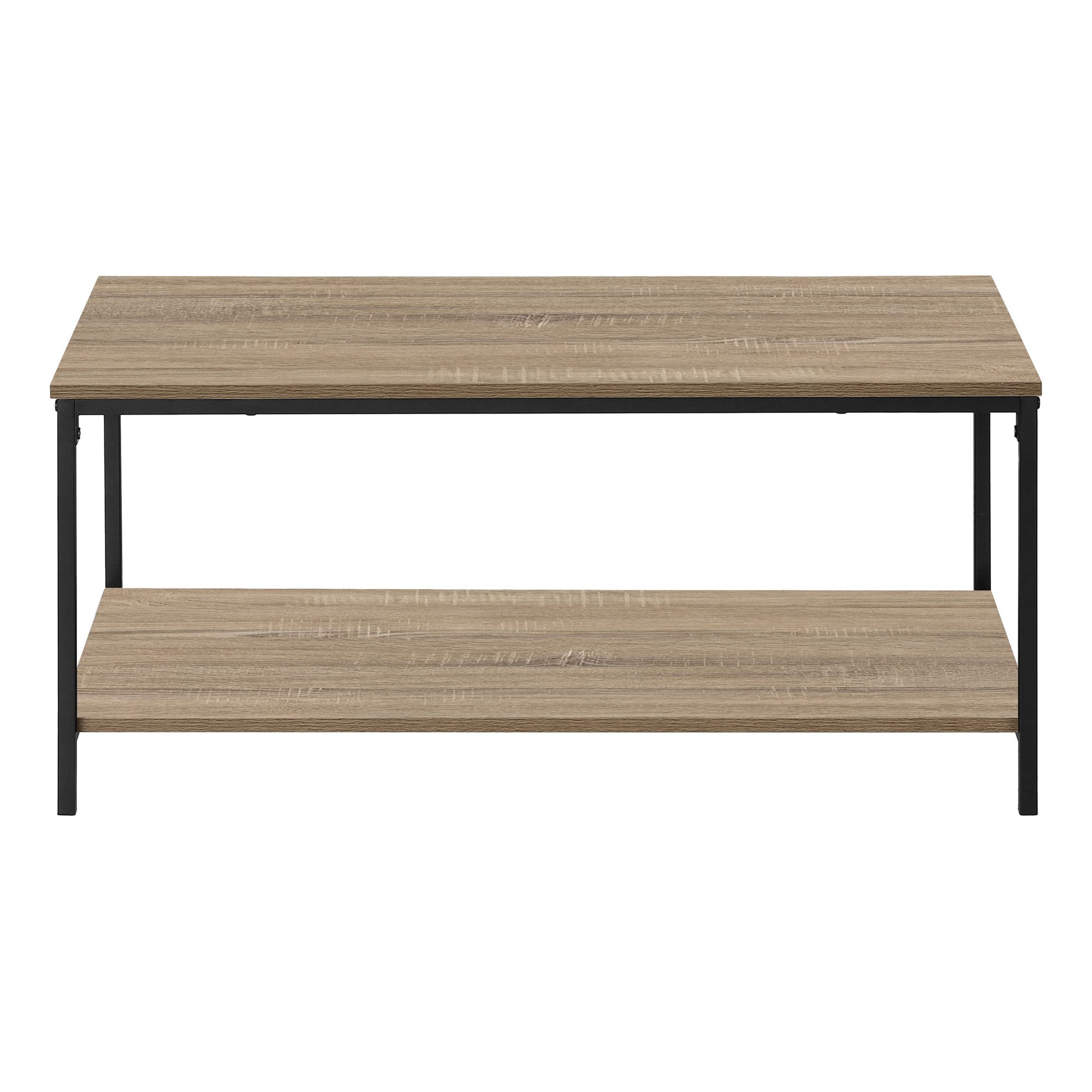 - Stylish Design: Enhance your living room with this modern cocktail table, featuring a two-tier laminate finish complemented by a striking metal leg base.