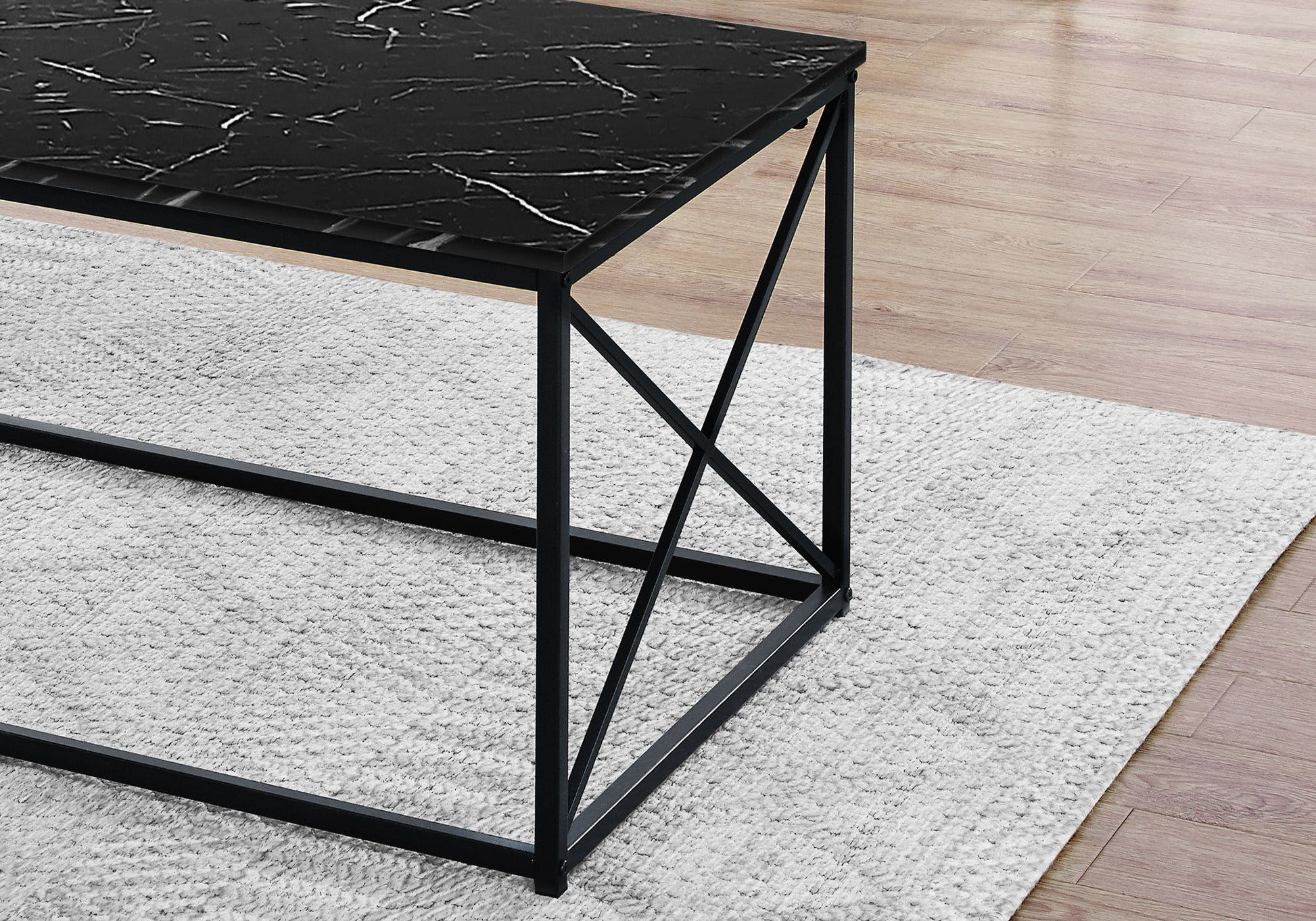 Table Set, Coffee, End, Side, Accent, Living Room, Marble Look Laminate, Contemporary & Modern (Set of 3) - Black