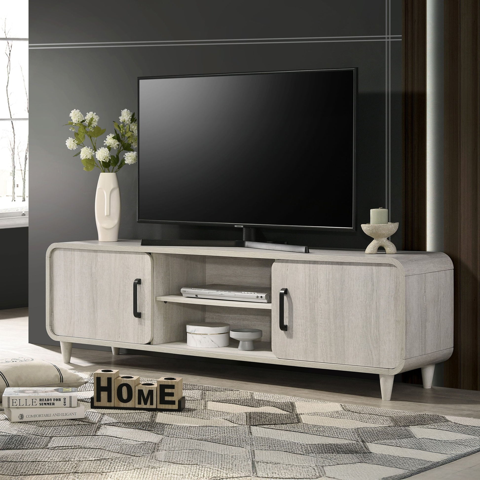 TV Stand With Sliding Doors And Handles, Living Room Furniture - Antique White