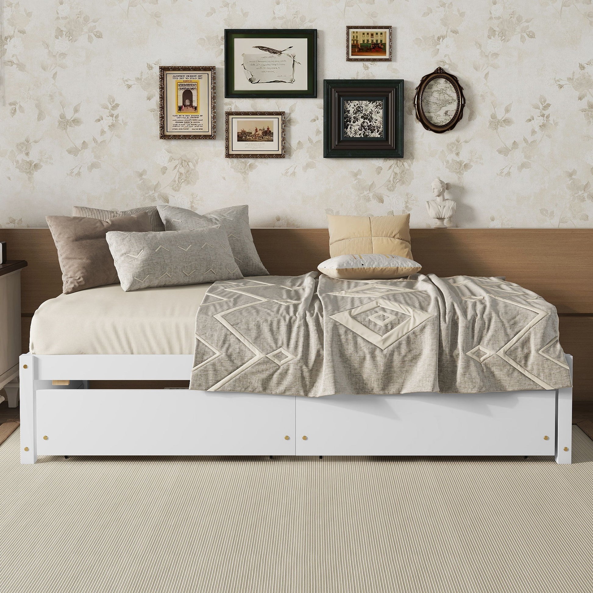 Twin Bed With 2 Drawers, Solid Wood, No Box Spring Needed - White
