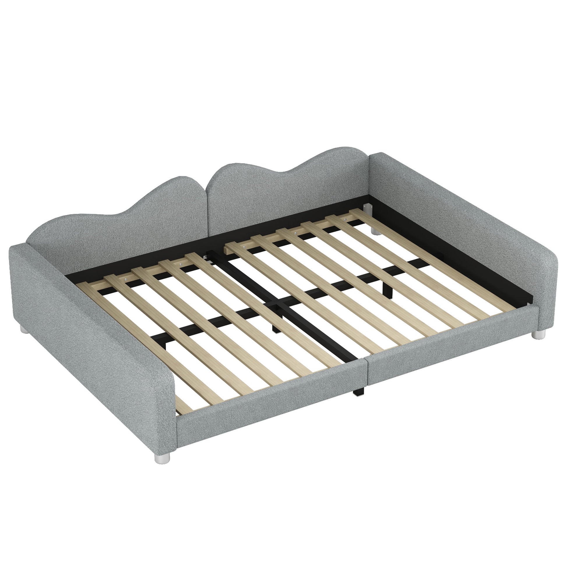Full Size Upholstered Daybed, Sherpa Fabric Sofabed With Cloud-Shaped Backrest, No Box - Spring Needed - Gray