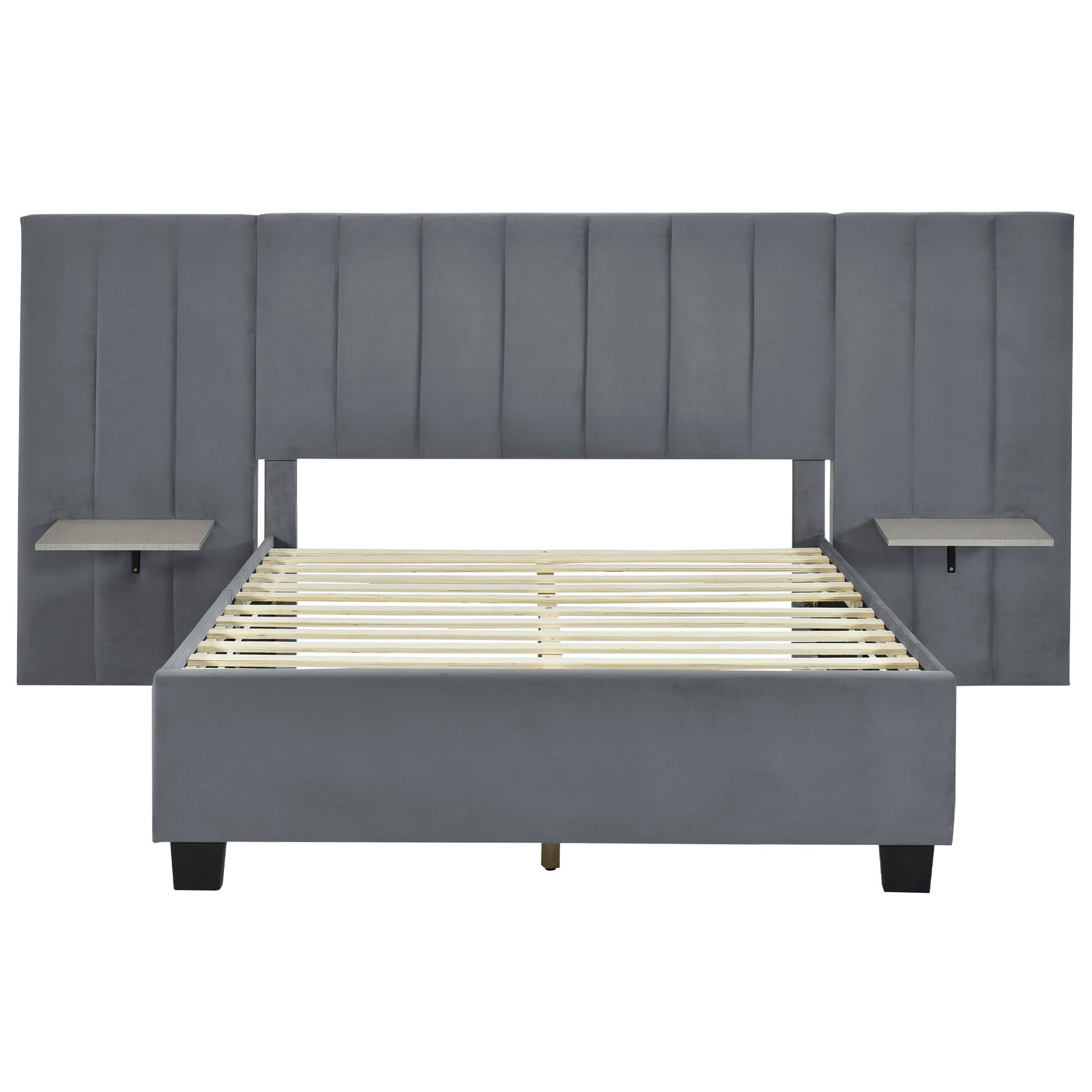 Enjoy the ultimate in comfort with the oversized and ultra-soft headboard, providing a cozy backdrop for relaxation. Additionally, the integrated shelves on both sides of the headboard offer convenient storage for your bedside essentials, keeping them within easy reach. With its sleek and contemporary design, this bed seamlessly blends style and functionality, creating a tranquil and inviting atmosphere where you can unwind and rejuvenate in comfort.