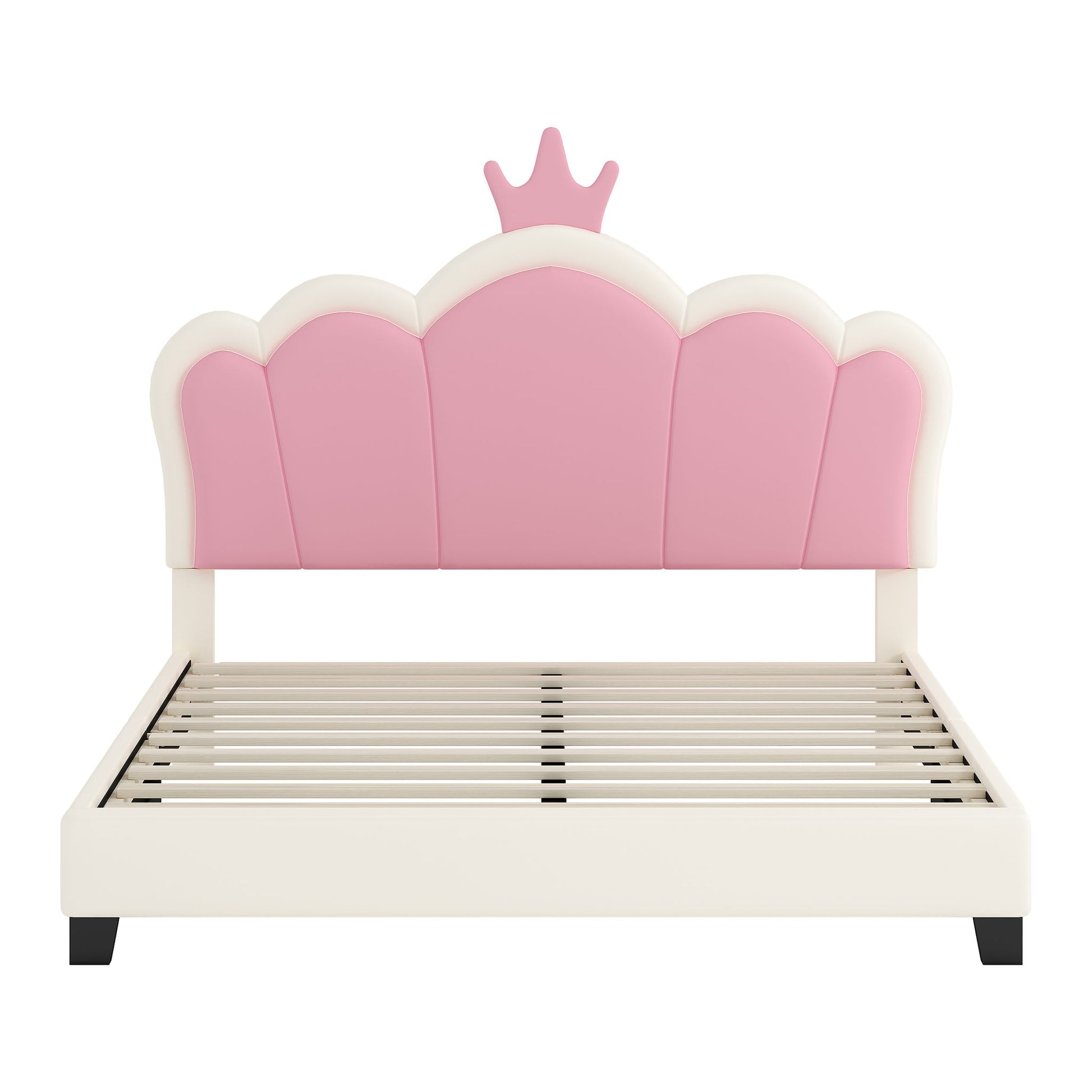 Full Size Upholstered Princess Bed & Crown Headboard, Full Size Platform Bed With Headboard And Footboard - White / Pink
