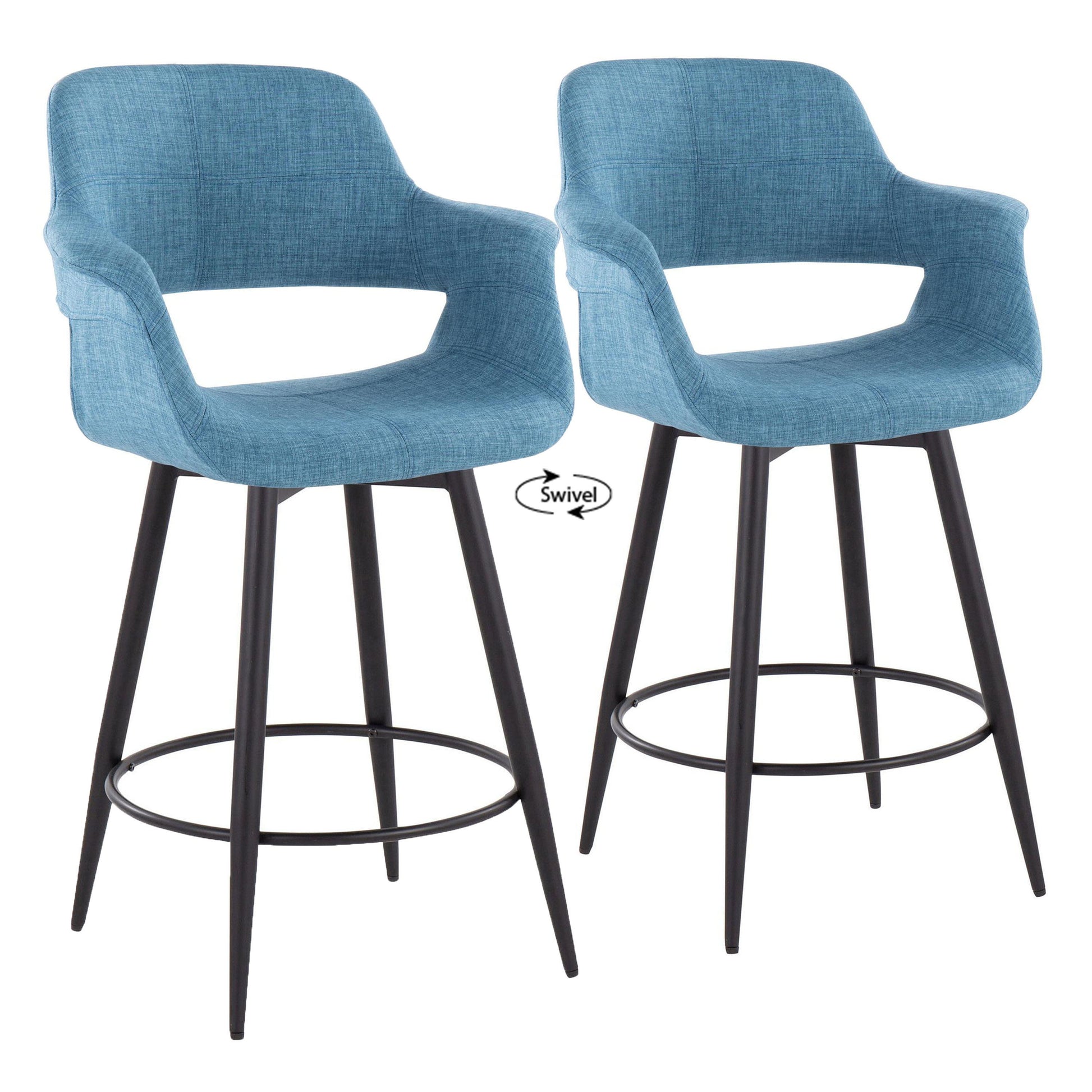 Vintage Flair - Mid-Century Modern Fixed Height Counter Stool With Swivel With Round Footrest (Set of 2) - Matte Black / Blue
