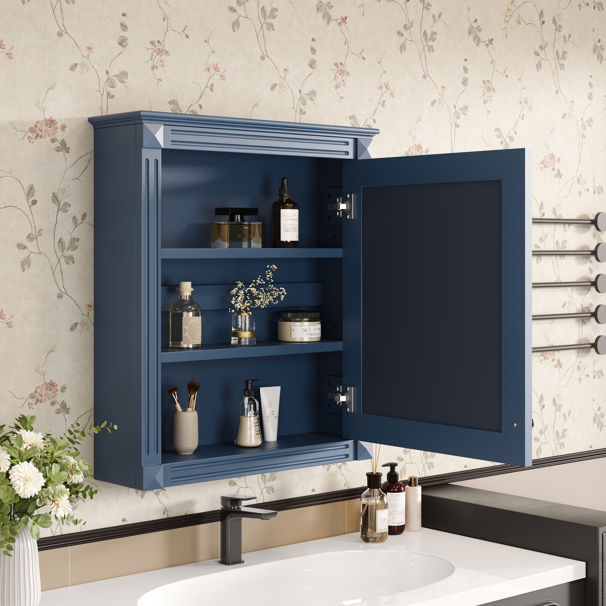 Wall Mounted Bathroom Storage Cabinet With Mirror, Medicine Cabinet With Height Adjustable Shelf, Over The Toilet Space Saver Cabinet - Blue