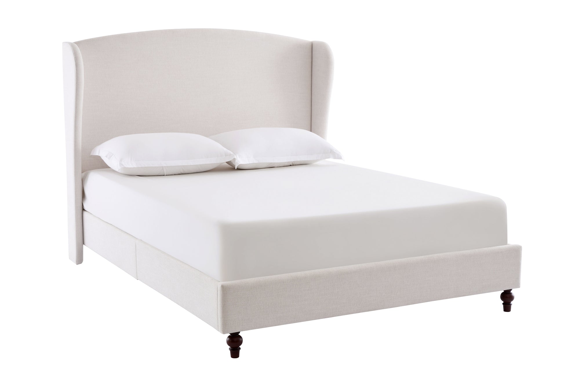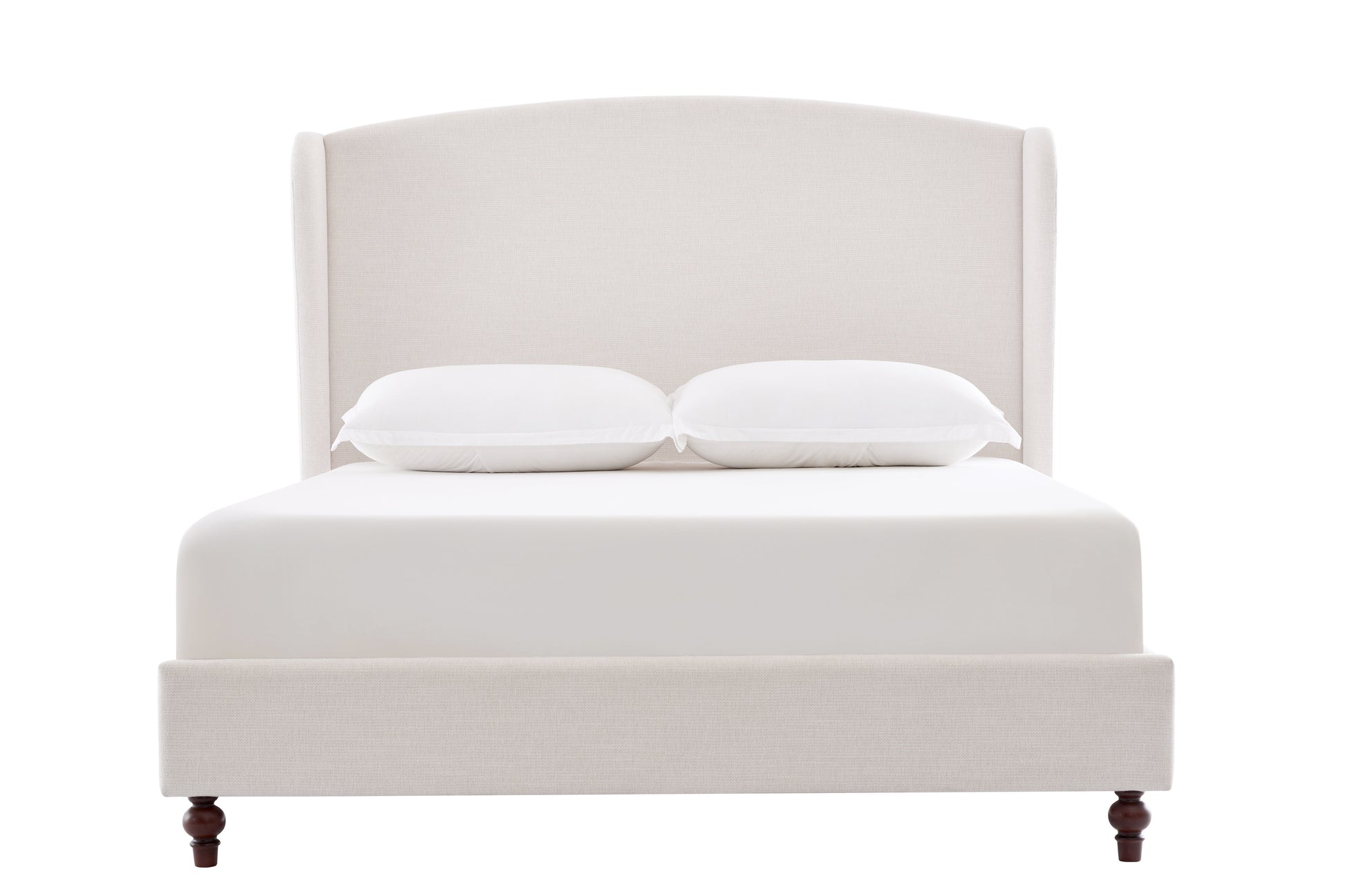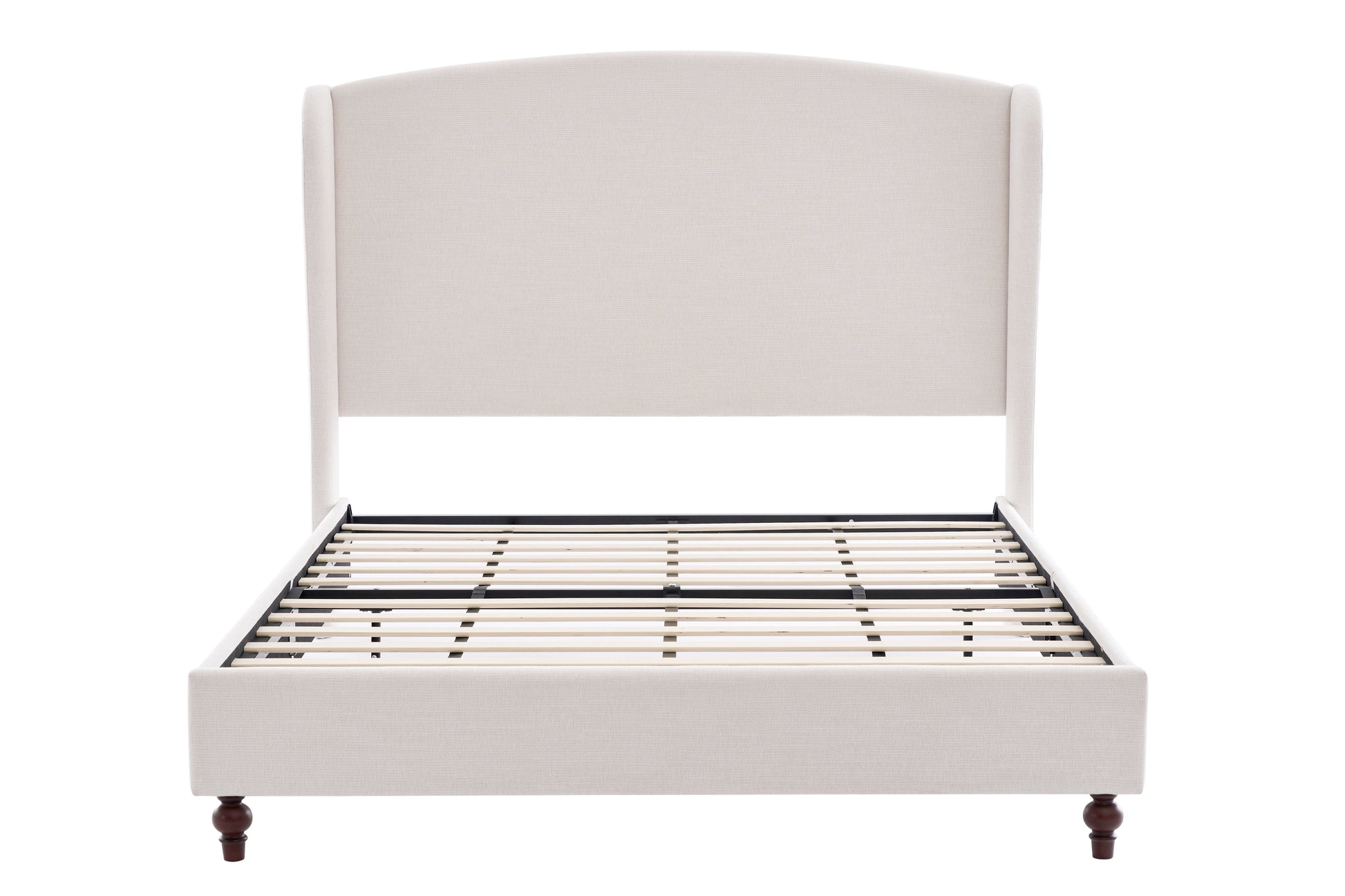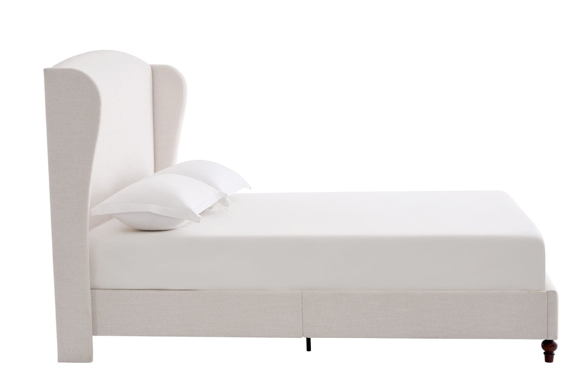 Windsor - King Tall Headboard Upholstered Wingback Bed Premium Minimalist Designs No Box Spring Needed - Cream White