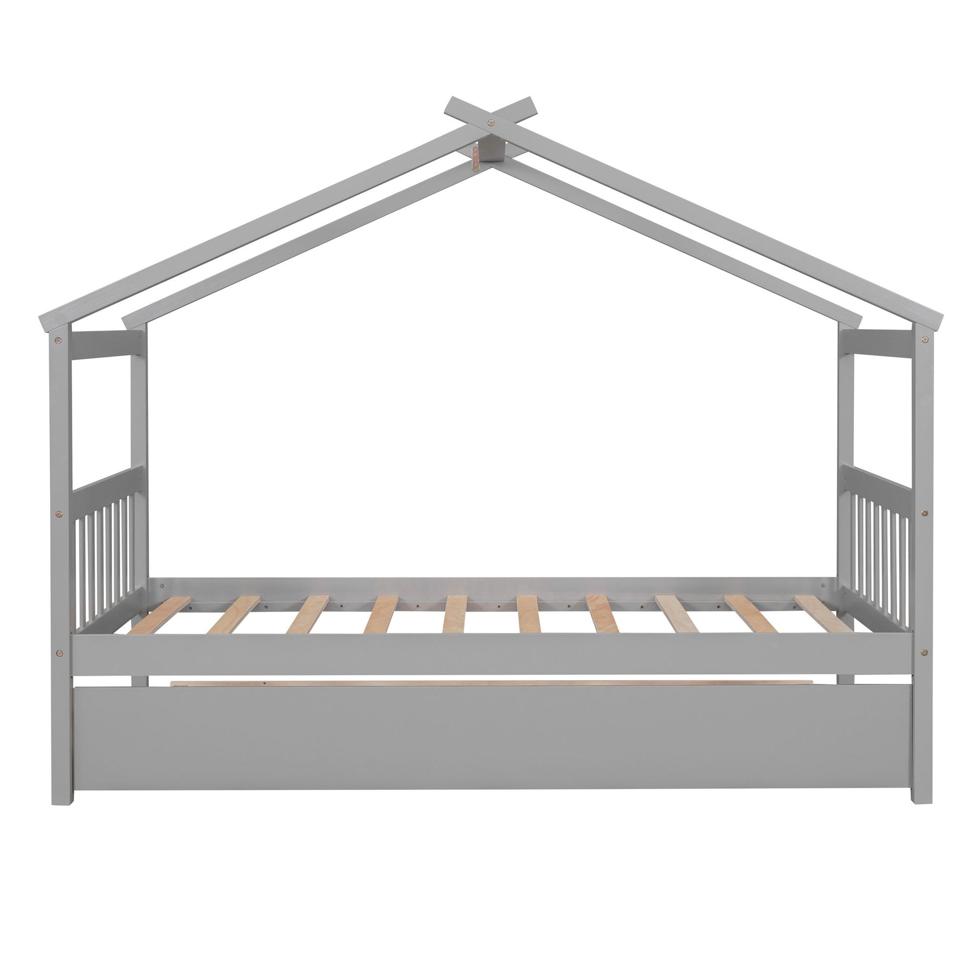 Twin Size House Bed With Twin Size Trundle - Gray
